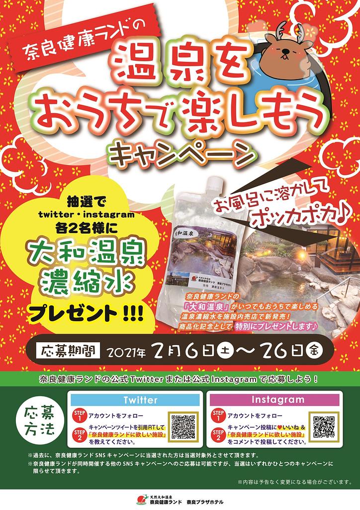 奈良健康ランド公式Instagram(@narakenkoland)をフォロー&いいね&キャンペーン投稿に「2021年の抱負」をコメントで投稿してください。