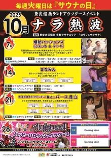 - 参加無料(奈良健康ランド入館料及び有料サウナエリア利用料が必要)