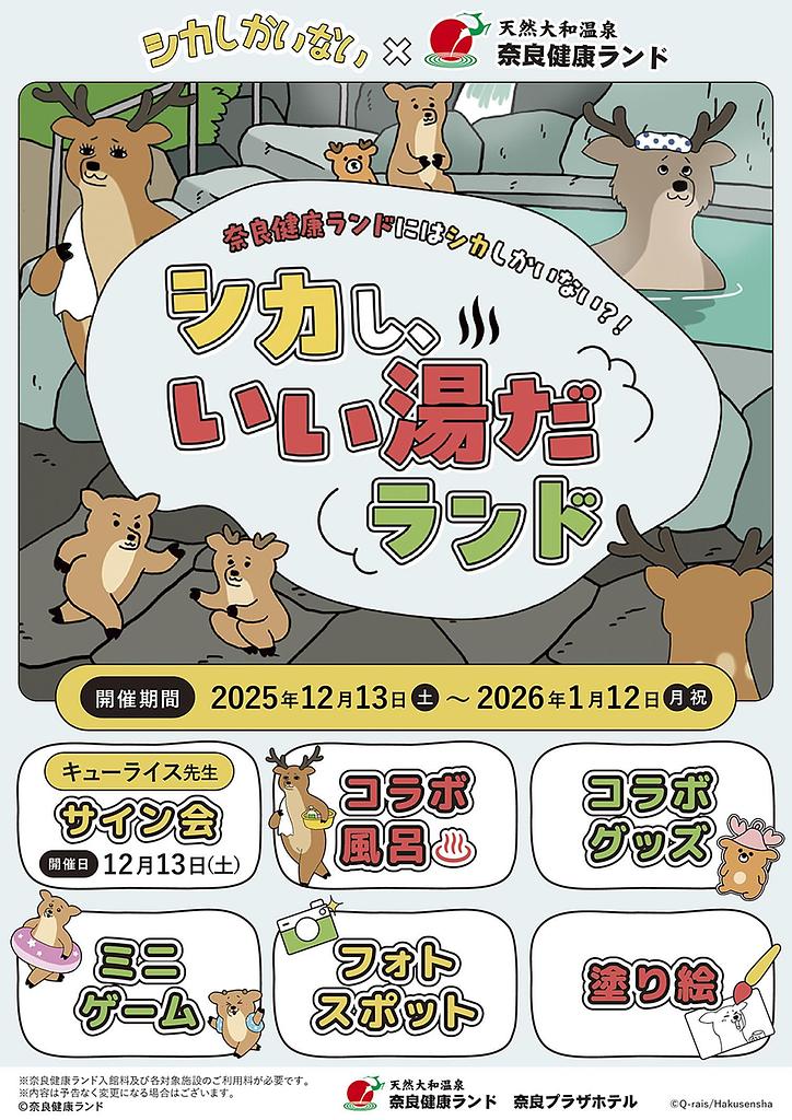 - 絵本作家・漫画家キューライス氏の人気作『シカしかいない』と奈良健康ランドが初コラボ!
