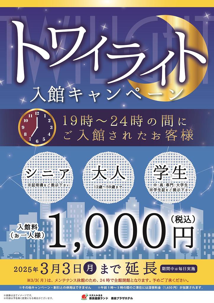 19時以降のご入館で、お得に奈良健康ランドをご利用いただけるキャンペーンを開催♨