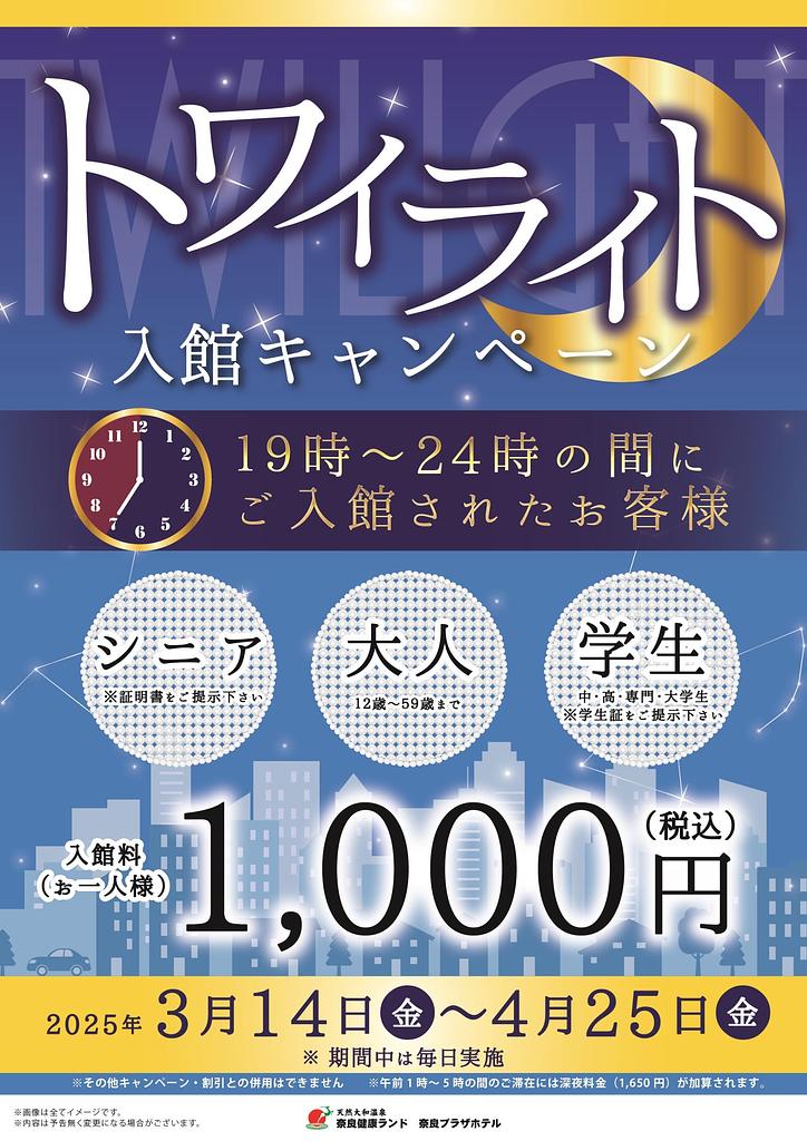 19時以降のご入館で、お得に奈良健康ランドをご利用いただけるキャンペーンを開催♨