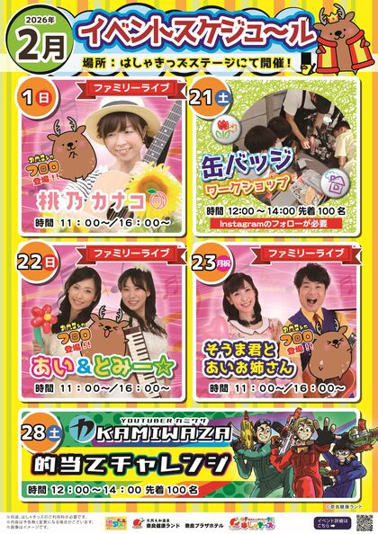 ※ご入場には、お子様(0歳〜小学6年生)に保護者様(保護者=親権者もしくは20歳以上の方)の同伴が必要。