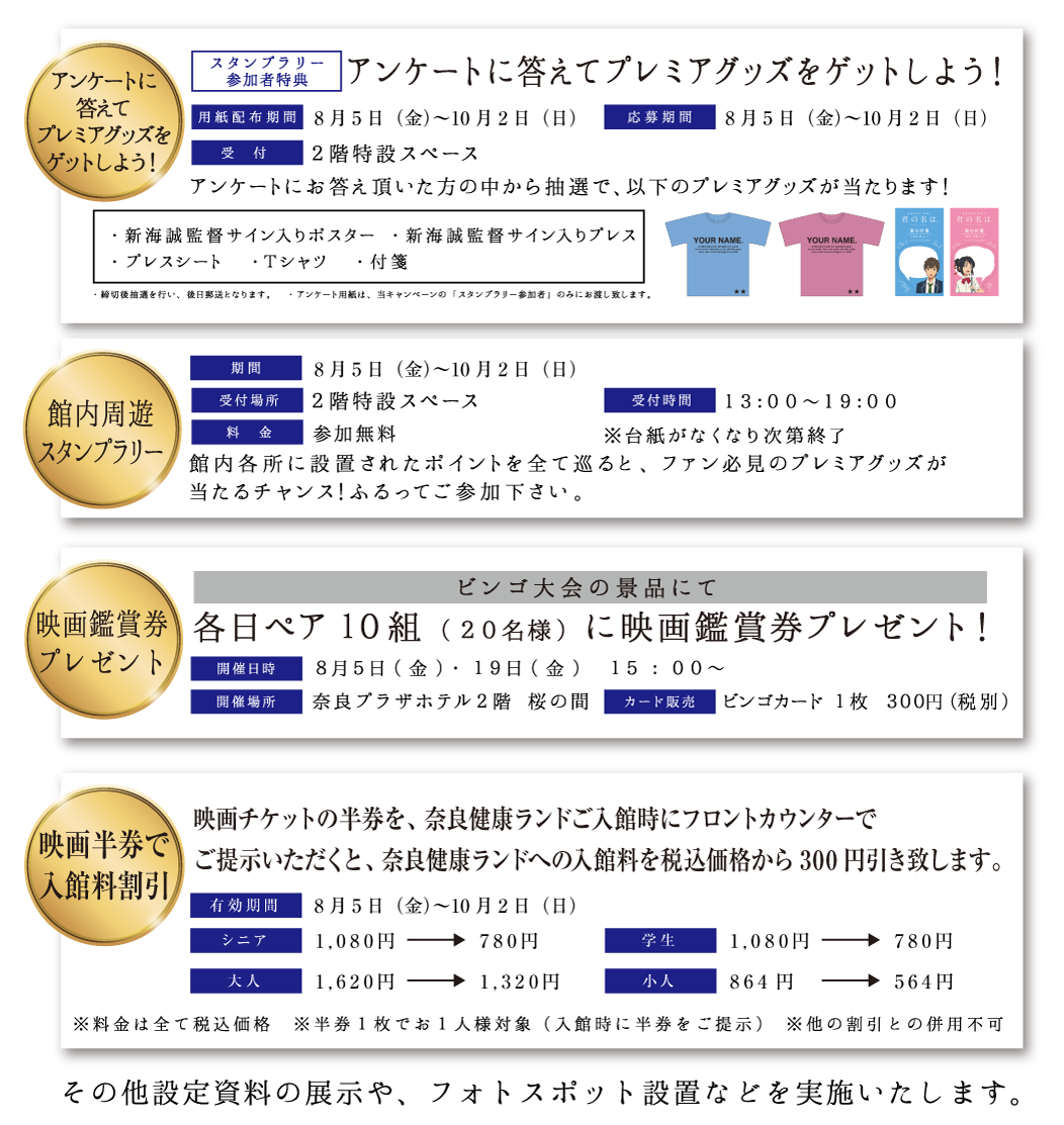 さらに、映画鑑賞券の半券をお持ち頂くと、奈良健康ランドの入館料割引特典も!