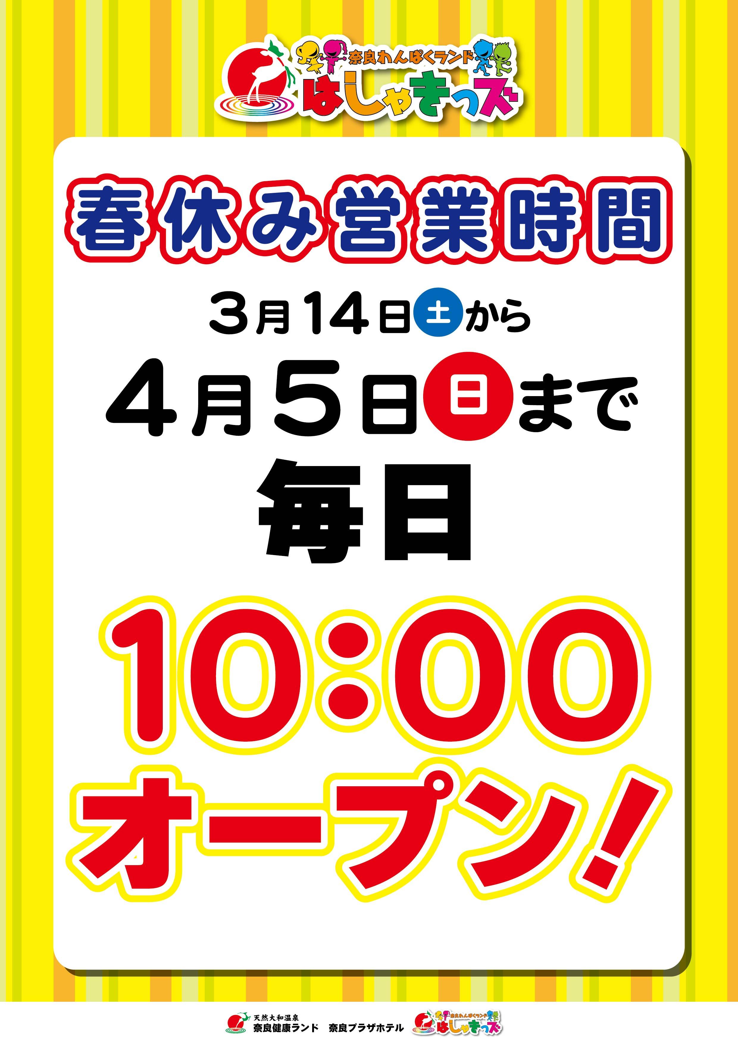 奈良わんぱくランドはしゃきっズ 春休み営業時間のお知らせ