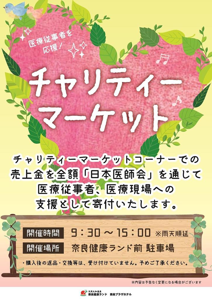 日々、医療現場を昼夜を問わず支えておられる医療従事者の方々への支援を目的としたチャリティーマーケットを、奈良健康ランドフリーマーケット会場内にて実施致します。