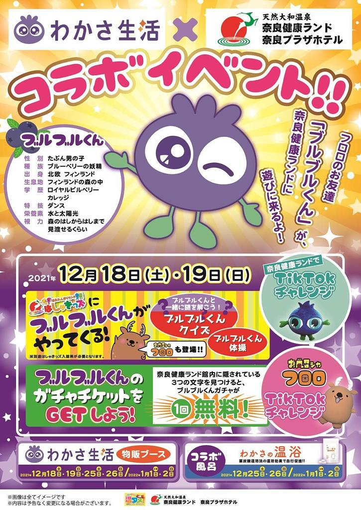 - 奈良健康ランドに、わかさ生活のブルブルくんがやってくる!
