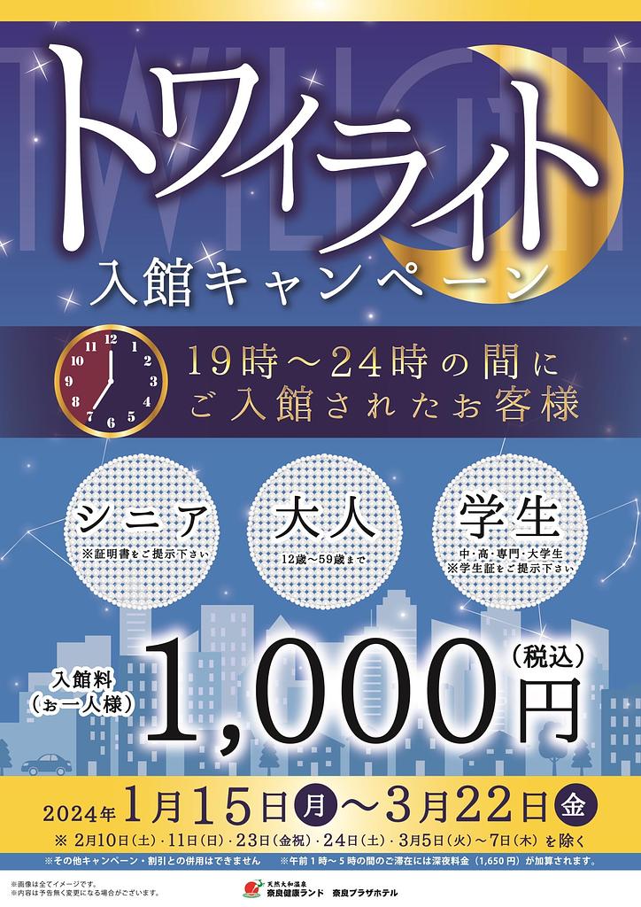 - 19時~24時までにご入館のお客様は、奈良健康ランドをお得にご利用頂けます✨