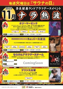 - 参加無料(奈良健康ランド入館料及び有料サウナエリア利用料が必要)