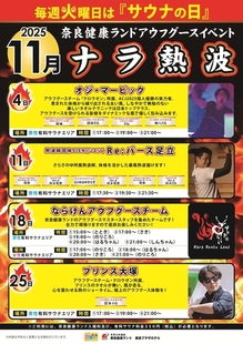 - 参加無料(奈良健康ランド入館料及び有料サウナエリア利用料が必要)