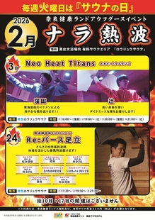 - 参加無料(奈良健康ランド入館料及び有料サウナエリア利用料が必要)