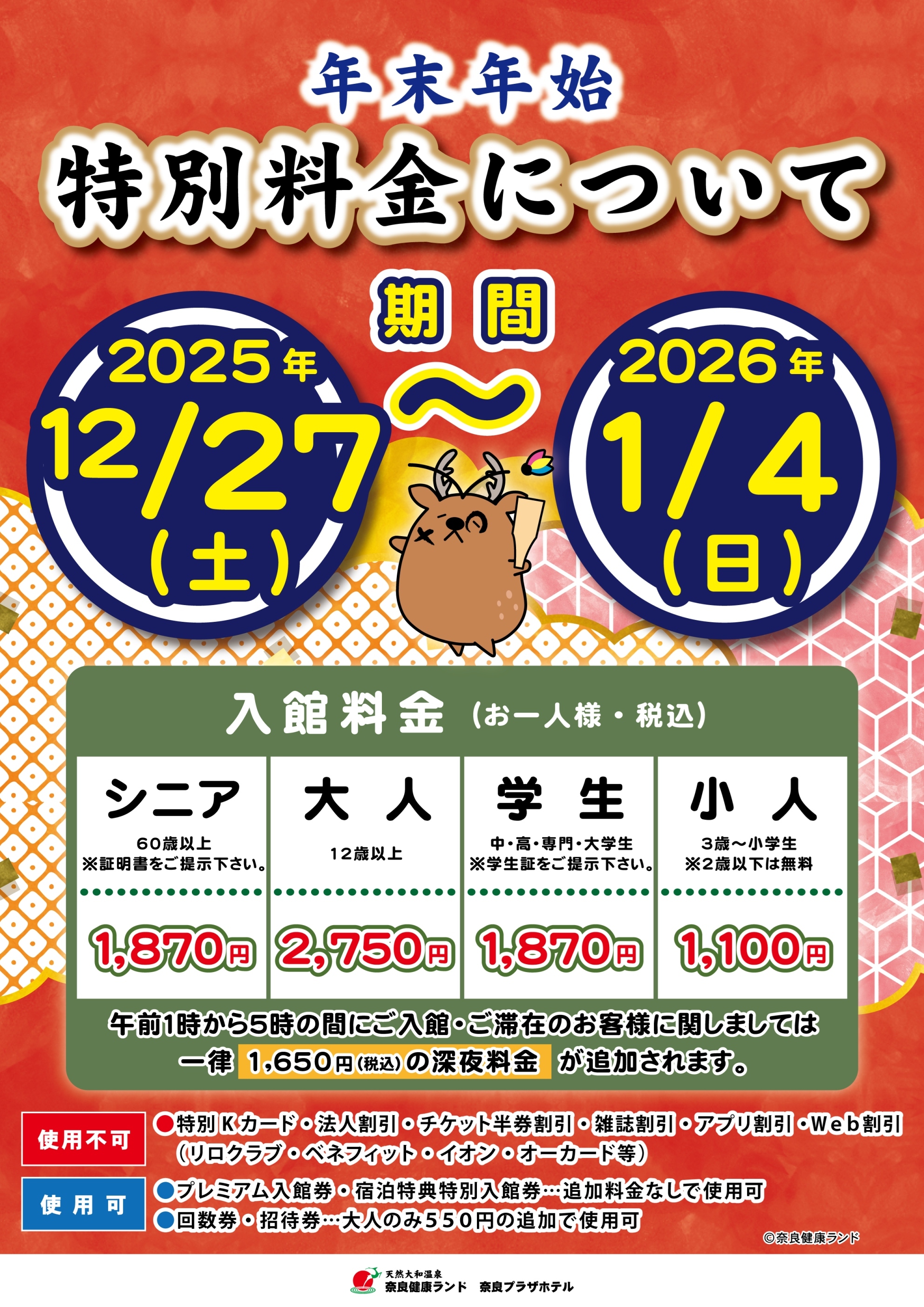 2025年12月25日【再告知】2025年~2026年 年末年始特別料金について