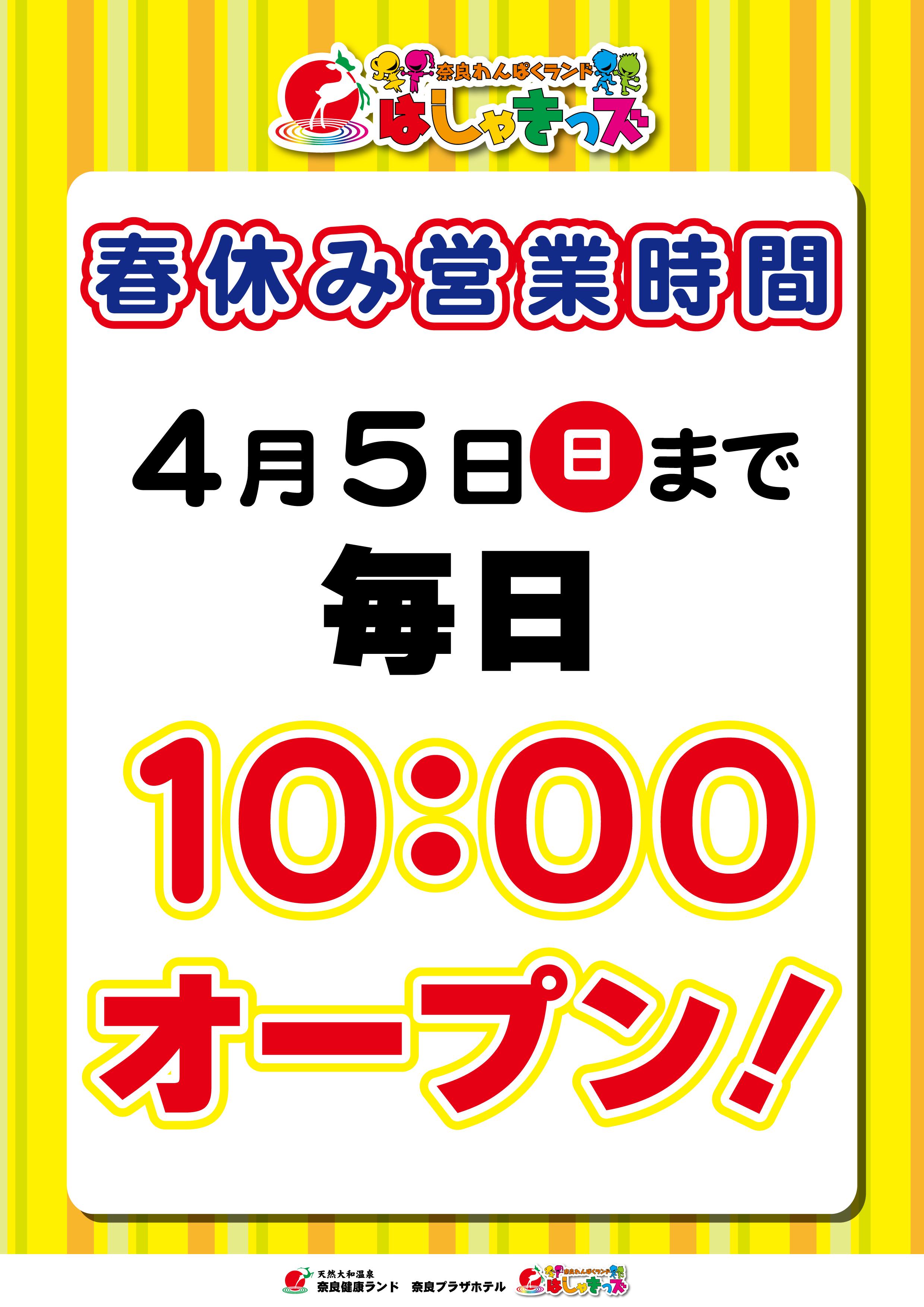 奈良わんぱくランドはしゃきっズ 春休み営業時間のお知らせ
